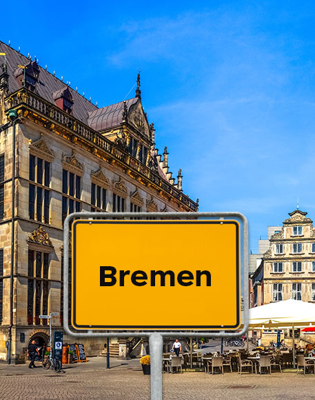 Willkommen und „Moin“ bei uns in Bremen! Unsere Niederlassung in Bremen finden Sie zentral im Stadtzentrum in der Balgebrückstraße 15. Dank der Lage erreichen Sie uns mit den öffentlichen Verkehrsmitteln bequem und einfach. Von der Haltestelle "Domsheide", die rund zwei Gehminuten entfernt ist, erreichen Sie uns beispielsweise mit den Trambahnen 2, 3, 4, 6 und 8 oder mit der Buslinie 25. Unsere Niederlassung finden Sie direkt am Weserufer an der Wilhelm-Kaisen-Brücke.